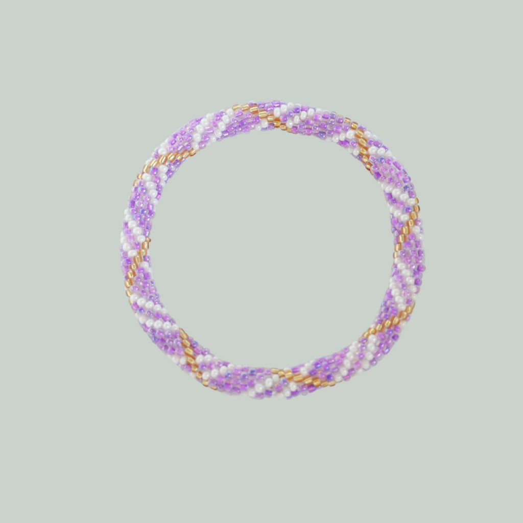 ROLL-ON PERLEARMBÅND FRA NEPAL - Lavendel med guld og hvid detalje