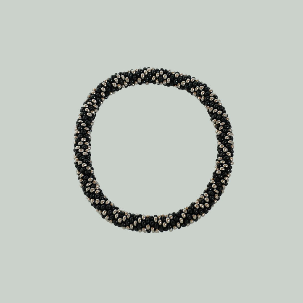 ROLL-ON PERLEARMBÅND FRA NEPAL - MIX AF SORT OG SØLV