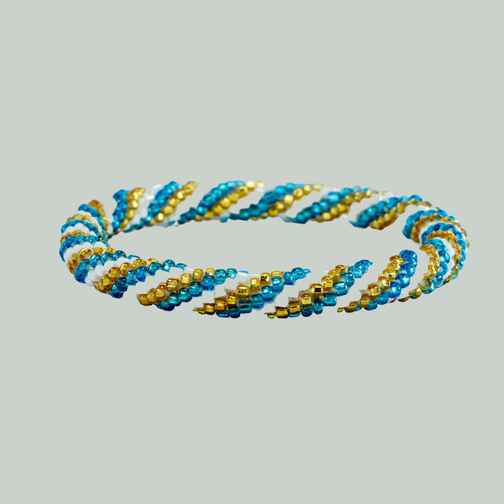 De smukke armbånd er alle håndlavede af kvinder i Nepal og derfor er hver enkelt af dem unik.