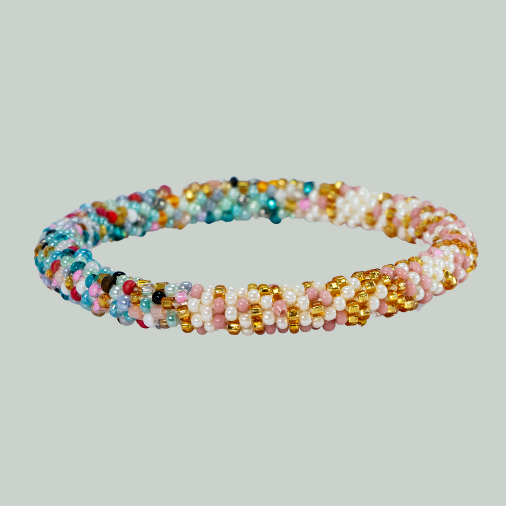 De smukke armbånd er alle håndlavede af kvinder i Nepal og derfor er hver enkelt af dem unik.