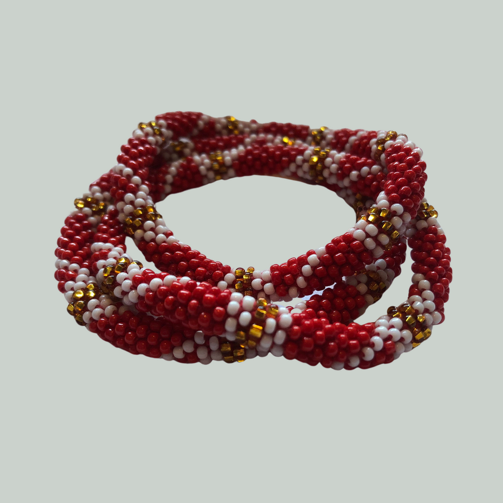 ROLL-ON PERLEARMBÅND - RØD MED GULD-HVID MØNSTER