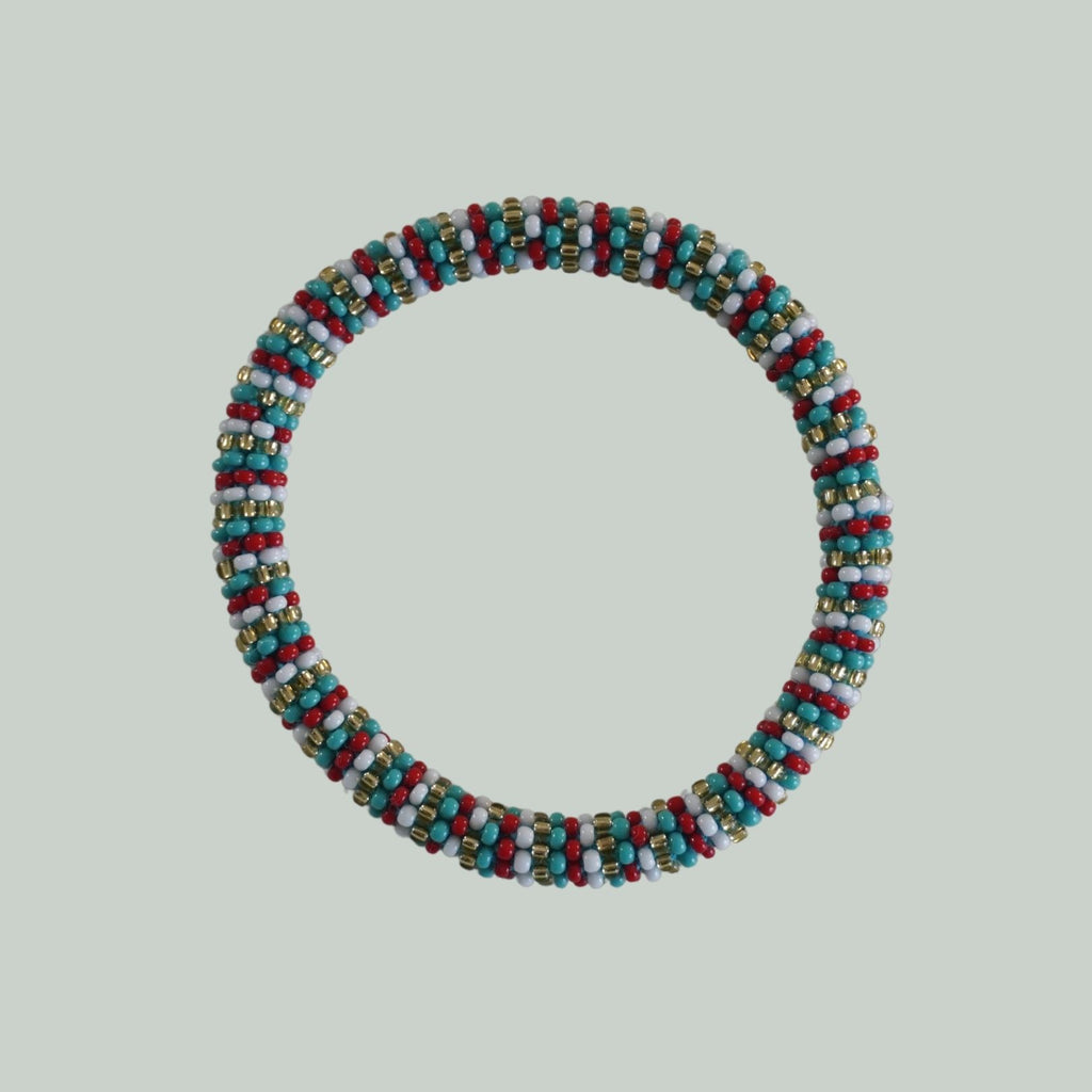 De smukke armbånd er alle håndlavede af kvinder i Nepal og derfor er hver enkelt af dem unik.